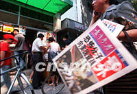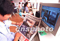 組圖:北京大學生全面關注美國“爆炸事件” 2001年09月12日 16:21 ![]() 十一日發生的美國受襲“爆炸事件”引起北京媒體關注,十二日一家媒體特意加印號外,北大學生午休時間紛紛搶購。中新社圖 張宇 攝 ![]() 十一日發生的美國受襲“爆炸事件”引起北京大學生關注,十二日中午北京大學附近近千臺電腦的網吧內座無虛席,一名學生邊瀏覽網頁,邊翻閱報刊,全面關注此次“爆炸事件”。中新社圖 張宇 攝