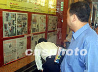 圖文:香港市民搶閱號外 對美被襲眾說紛紜 2001年09月13日 03:50 ![]() 昨日美國遭受歷史上最嚴重的恐怖襲擊后,今日一大早香港市民就聚集到報館的櫥窗前觀看有關情況。中新社記者 任海霞 攝 ![]() 9月12日上午,一名香港市民在匯豐銀行總部前的大獅子前閱讀美國局勢的報紙。中新社圖 任晨鳴 攝