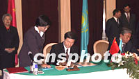 圖文:中國與哈薩克斯坦發表兩國政府聯合公報 2001年09月14日 14:42 ![]() 首次訪問哈薩克斯坦共和國的中國總理朱镕基,九月十二日在哈首都阿斯塔納與哈總理托卡耶夫共同簽署中哈聯合公報。中新社記者 孟慶雷 攝