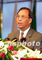 ![]() 中國國家發展計劃委員會主任曾培炎十九日上午在華商大會中國經濟論壇上作題為“乘十五計劃東風奏西部開發凱歌”的演講。中新社圖 李剛 攝 ![]() 中國外經貿部部長石廣生十九日上午在中國經濟論壇的演講上做題為“開放的中國,美好的未來”的演講。中新社圖 李剛 攝