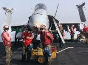 “企業(yè)號”航母工作人員為戰(zhàn)機裝備導(dǎo)彈