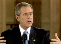 布什舉行記者會(huì)闡述軍事打擊等問題(全文) 2001年10月12日 15:24 ![]() 當(dāng)?shù)貢r(shí)間10月11日晚,布什在白宮召開新聞發(fā)布會(huì)。布什說:"這是21世紀(jì)的第一場戰(zhàn)爭,美國會(huì)將這場戰(zhàn)爭繼續(xù)下去,可能是一年,也可能是兩年。從越南戰(zhàn)爭中我們可以學(xué)到許多東西,我們不可能使用常規(guī)軍和常規(guī)武器對付游擊隊(duì)。" 中新社圖