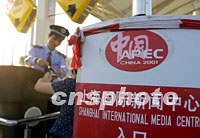 圖:APEC會議新聞中心出入關口 2001年10月13日 19:27 ![]() 本屆APEC會議的新聞發布廳設置在上海東方明珠大廈,目前出入大廈的人員都必須經過門口警衛的嚴格證件檢查。中新社圖 劉殊瑾 攝 |