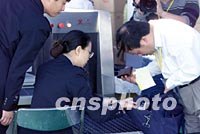 ![]() 在十四日上午舉行的的APEC新聞中心啟用儀式上,笑逐言開的中國外交部新聞發言人朱邦造被記者包圍,并就APEC高峰會準備情況以及臺灣代表出席會議等問題作答。中新社記者 毛建軍 攝 ![]() 設在上海明珠塔下的APEC新聞中心十四日上午正式啟用,入口處由保衛人員對所有進入者實行嚴格檢查,以確保安全。中新社記者 毛建軍 攝