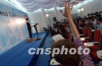 圖:中外記者聚焦上海APEC 2001年10月14日 15:19 ![]() 2001年上海APEC會議中國籌委會秘書處發(fā)言人章啟月,十四日在新聞中心就2001年APEC會議總體安排問題舉行新聞發(fā)布會,中外記者就大會議題、安全保衛(wèi)等問題踴躍提問。中新社記者 王瑤 攝 |