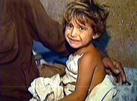 阿富汗首都喀布爾以及塔利班大本營所在地坎大哈市等地區14日清晨再次遭到美軍戰機和導彈的猛烈轟炸,其中對喀布爾的襲擊造成4名平民死亡。自美國及其盟國本月7日對阿富汗發動軍事打擊以來,已有300多無辜平民死亡。圖為阿富汗一家醫院內受傷的小女孩。