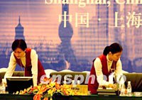 女服務員在上海浦東國際會議中心做好迎接準備,APEC第十三次部長級會議十月十七日在此舉行。中新社記者 賈國榮 攝