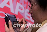 圖:采訪APEC各國記者全副武裝 2001年10月17日 15:30 ![]() 采訪上海APEC的各國記者全副武裝,各種最先進(jìn)的拍攝、傳輸技術(shù)也紛紛登臺(tái)亮相,一位女記者用目前世界最小的康柏掌上電腦在新聞現(xiàn)場(chǎng)傳輸圖片。中新社記者 毛建軍 攝 |