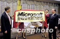 ![]() 十月十八日上海市市長徐匡迪與微軟公司主席比爾·蓋茨為新成立的微軟全球技術中心揭牌。同時,上海市政府與微軟公司還舉行“共同促進上海軟件產業發展諒解備忘錄”簽字儀式。中新社記者 潘索菲 攝