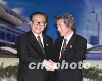 10月20日,中國國家主席江澤民在上海國際會議中心迎接日本首相小泉純一郎。中新社圖