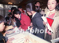 聚焦中國入世:中國高校采取舉措應對"入世" 2001年11月10日 22:15 ![]() 入世將給中國經濟帶來極大的商機,使金融、國際貿易等經濟專業成為今年研究生報名的熱點。圖為十日在2002年全國碩士生招生考試清華大學報名點,場面十分火爆。中新社記者 張勤 攝