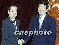 朱镕基結(jié)束東南亞之行今天下午乘專機(jī)回到北京,國務(wù)院副總理錢其琛等前往人民大會堂迎接。中新社記者 滿會喬 攝