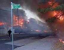 失事現(xiàn)場至少已有15名受傷民眾送附近醫(yī)院 2001年11月13日 01:19 ![]() ![]() 圖為墜機現(xiàn)場燃起的熊熊大火 中新網(wǎng)北京11月13日消息:美國航班墜毀后,紐約皇后區(qū)洛克威住宅區(qū)失事現(xiàn)場附近醫(yī)院已涌入多位因吸入濃煙而受傷的民眾。 這架空中巴士A-300型班機是于當?shù)貢r間9時15分自肯尼迪機場起飛不久墜毀。事故現(xiàn)場洛克威區(qū)是個住宅區(qū),直到中午為止,火勢仍未熄滅,但因濃煙由黑轉白,顯示火勢已經(jīng)被控制。紐約市警察已全力疏散當?shù)鼐用竦桨踩貐^(qū)。 災區(qū)附近的急診室目前至少已有15名受傷民眾,其中有2人因為吸入濃煙情況較為嚴重。 |