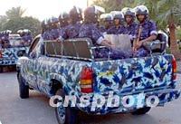 第四屆WTO部長會議十四日晚在卡塔爾首都多哈落下帷幕,為大會執行警戒任務的卡塔爾防暴軍警撤出防衛。中新社記者 錢興強 攝