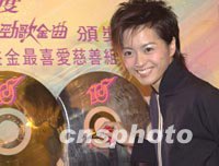 組圖:梁詠琪出席十大勁歌金曲頒獎典禮 2001年12月11日 10:04 ![]() 無線電視「2001年度十大勁歌金曲頒獎典禮」10日在香港舉行記者會,眾多歌星均出席盛會,歌星梁詠琪在大型CD上簽名。頒獎禮將于明年1月13日晚假紅館舉行,門票收益將撥捐公益金作慈善用。中新社傳真 鄧慶樂 攝 ![]() 歌星小雪10日在香港出席無線電視「2001年度十大勁歌金曲頒獎典禮」記者會,雖然圣誕節還有十多天,但小雪的打扮極具圣誕氣氛。中新社傳真 鄧慶樂 攝