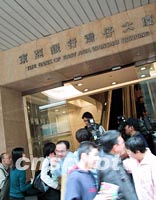 香港傳媒關注東亞銀行裁員潮.12日中午,香港一些傳媒在灣仔東亞銀行大廈外,等候受到裁員影響的銀行員工,了解最新情況。由于經濟環境欠佳。香港多時間銀行均從“節流”著手,進行凍薪及裁員。中新社傳真 洪少葵 攝