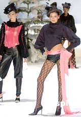![]() 香港時裝節展示前衛男女冬裝。“香港時裝節2002秋冬系列”的“冬日傳奇”時裝展示1月15日在香港會展中心舉行,模特在“冰天雪地”中展示香港設計師最新設計的男女前衛冬裝。中新社傳真 任晨鳴 攝 ![]() 香港時裝節展示黑紅相佩女冬裝。“香港時裝節2002秋冬系列”的“冬日傳奇”時裝展示1月15日在香港會展中心舉行,模特在“冰天雪地”中展示香港設計師最新設計的黑紅相佩的女冬裝。中新社傳真 任晨鳴 攝