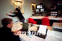 組圖:中外媒體聚焦美國總統布什訪華 2002年02月20日 14:44 ![]() 二十日,專程來京采訪美國布什總統訪華的美國電視聯合記者采訪團(US TV POOL),已在北京香格里拉飯店安營扎寨。中新社記者 史利 攝 ![]() 二十日,在北京香格里拉飯店設立的中方新聞中心,中國記者們正在精心策劃,周密布置。一場采訪美國布什總統訪華的新聞大戰即將開始。中新社記者 史利 攝