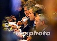 ![]() 美國總統布什二十一日中午在北京出席兩國首腦會談。中新社記者 賈國榮 攝