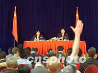 圖:外交部發(fā)言人孔泉舉行新聞發(fā)布會(huì) 2002年02月21日 18:24 ![]() 中國(guó)外交部發(fā)言人孔泉二十一日在北京香格里拉飯店舉行新聞發(fā)布會(huì),就中美首腦會(huì)晤答中外記者提問(wèn)。中新社記者 毛建軍 攝