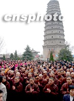 ![]() 法門寺佛指舍利赴臺灣地區瞻禮(供奉)法會二十二日在西安法門寺舉行,來自臺灣的恭迎團,由大陸佛教人士組成的護送團以及護法團等各界有關人士千余人匯集法門寺。中新社記者 錢興強 攝