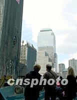 蕭條的美國紐約曼哈頓下城區,最熱鬧的地方仍舊是世貿中心,每天都有許多人專程前來目睹世貿兩座高樓倒塌的現場。中新社圖 趙海燕 攝