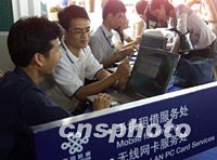 圖:聯(lián)通為博鰲論壇提供免費上網(wǎng)卡服務(wù) 2002年04月09日 19:16 ![]() 中國聯(lián)通的工作人員四月九日在海南博鰲為采訪論壇的中外記者安裝無線上網(wǎng)卡,會議期間中國聯(lián)通將為記者提供免費的無線高速上網(wǎng)服務(wù)。中新社記者 滿會喬 攝