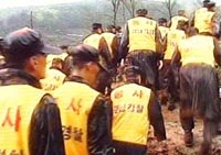 17日,在中國國航4·15墜機事件發(fā)生兩天后,韓國釜山當?shù)卣越M織大批救援人員在失事現(xiàn)場進行搜救工作,但大雨后泥濘的山地給搜索帶來很大的困難。