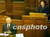 ![]() =香港特首董建華,4月17日向立法會介紹政府機制改革的“高官問責制”,政壇元老鍾士元出席旁廳。任晨鳴 攝