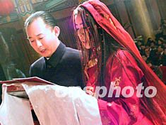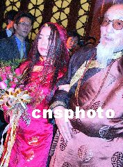 臺灣前政要陳履安長子與藏族姑娘在京喜結良緣 2002年04月28日 17:09 ![]() 圖為藏族姑娘在父親的帶領下步入結婚禮堂。王麗南 攝 ![]() 臺灣先生與西藏女認識兩月成婚。王麗南 攝 ![]() 參加陳宇廷和藏族姑娘央金拉姆的婚禮,爭相為新婚人送哈達。王麗南 攝 中新社北京四月二十八日電(記者耿軍)臺灣知名人士陳履安先生的長子陳宇廷與西藏女企業家、歌手央金拉姆喜結良緣。陳宇廷與央金拉姆的婚禮今天上午在北京飯店大宴會廳舉行。 婚禮主禮臺正后方懸掛著碩大的“解脫”二字,左右懸掛弘一大師的書法“不為自己求安樂,但愿眾生得離苦”。主禮臺上陳放有四只高大的經幢及唐卡,六位身披法衣的喇嘛分列兩側。 上午十一時,婚禮在法號聲中開始。大型投影屏幕上播放新人剪影短片,片中介紹了陳宇廷的爺爺陳誠、父親陳履安及央金拉姆一家。 當身著白色中式對襟衫的伴郎陪陳宇廷、身著藏裝的伴娘陪央金拉姆入席時,活佛帶領喇嘛唱頌吉祥祝福文。 這對新人依次獻上禮品,以報答父母、眾生、國家和三寶四重恩德,并跟隨活佛念“懺悔經”、“發愿文”。 這對新人在宣讀結婚誓約后,交換信物。陳宇廷贈予央金漢傳僧服和藏傳僧服,央金贈予陳宇廷金鋼鈴和金鋼杵。 陳履安先生代表家長向主持婚禮的活佛及來賓表示感謝。 擔任解脫服飾實業副董事長、化育文教基金會與陳誠文教基金會執行長的陳宇廷,今年三十七歲,曾獲哈佛大學企業管理碩士學位。央金拉姆是藏族女企業家和歌手,她曾在北京中央民族大學藝術系和蘭州西北民族大學藝術系就讀,近年出任奇正藏藥集團營銷副總經理。這對新人于去年在廣東中山相識。 各界人士近千人出席了今天的婚禮。 相關報道:臺灣前“監察院長”陳履安抵京參加兒子婚禮