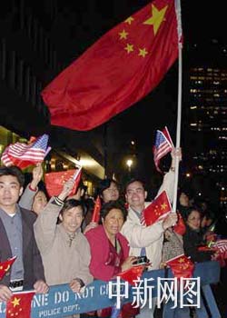 圖文特寫:華僑華人歡迎胡錦濤 點(diǎn)亮紐約"不夜城" 2002年04月29日 13:41 ![]() ![]() 中新社 趙海燕、陳建/攝 中新網(wǎng)紐約四月二十九日消息(記者陳建趙海燕)持續(xù)了一天的春雨使原本在周末就冷清的曼哈頓中城更顯得行人稀少。但二十八日黃昏時(shí)分當(dāng)曼哈頓漸漸進(jìn)入暮色的時(shí)候,卻開始出現(xiàn)了熱鬧的人群。 人群最終聚集在曼哈頓中城五十街與公園大道的交匯處,中國(guó)國(guó)家副主席胡錦濤今天凌晨抵達(dá)紐約訪問(wèn)下榻在位于這里的華爾道夫酒店。華僑華人熱烈的行動(dòng)與熱情的標(biāo)語(yǔ)使這里成為“不夜城”紐約午夜的最亮點(diǎn)。 二十八日晚上十點(diǎn)多鐘的時(shí)候,雨已經(jīng)停了,但氣溫剛剛超過(guò)攝氏十度,站在華爾道夫酒店外以及對(duì)面和側(cè)面的人行道上的華僑華人還是越來(lái)越多。他們將帶來(lái)的橫幅幾個(gè)人共同高舉過(guò)頭頂,橫幅上寫“歡迎胡錦濤訪問(wèn)美國(guó)”、“中美友好萬(wàn)歲”等。紐約已經(jīng)入夜,華僑華人特意用熒光效果制作的標(biāo)語(yǔ)顯得非常耀眼。 為了這次的迎接,紐約華僑華人已經(jīng)準(zhǔn)備了很長(zhǎng)時(shí)間。設(shè)計(jì)歡迎橫幅,設(shè)計(jì)歡迎隊(duì)伍,甚至設(shè)計(jì)紀(jì)念品。在他們拿到定制的歡迎橫幅時(shí)非常興奮,打電話通知朋友們來(lái)看,并準(zhǔn)備將橫幅掛在汽車上在紐約的中國(guó)城巡游一番。 前天,由中國(guó)的陳、胡、袁三姓氏華人組成的至孝篤親公所率先在會(huì)所掛起了五星紅旗以及歡迎胡錦濤訪美的大幅標(biāo)語(yǔ),并將胡錦濤稱為“宗長(zhǎng)”。中美友好協(xié)會(huì)等團(tuán)體還在報(bào)紙上刊登了歡迎胡錦濤訪美的恭和廣告。中國(guó)旅美科協(xié)發(fā)表公開信敦促美國(guó)恪守中美三個(gè)聯(lián)合公報(bào)的承諾,堅(jiān)信胡錦濤訪美必將促進(jìn)中美兩國(guó)在各領(lǐng)域的交流合作。美國(guó)江浙工商總會(huì)特別設(shè)計(jì)制作了紀(jì)念帽準(zhǔn)備送給胡錦濤副主席,從昨晚開始他們站在歡迎隊(duì)伍中,每個(gè)會(huì)員都頭戴一頂紀(jì)念帽,非常引人注目。 當(dāng)人們估計(jì)胡錦濤乘坐的汽車就要到達(dá)酒店的時(shí)候,歡迎人群開始出現(xiàn)更加熱烈的氣氛。有些華僑華人高聲唱起了中國(guó)國(guó)歌以及五星紅旗高高飄揚(yáng)、團(tuán)結(jié)就是力量等歌曲,手舉橫幅的人開始有節(jié)奏地抖動(dòng)橫幅,人們從不同的角度注視著華爾道夫酒店。這家具有悠久歷史的紐約著名酒店曾多次接待包括中國(guó)在內(nèi)的世界各國(guó)的著名人物。 胡錦濤訪美之行受到各界的關(guān)注。二十七日胡錦濤結(jié)束對(duì)馬來(lái)西亞和新加坡訪問(wèn)后抵達(dá)美國(guó)夏威夷,繼續(xù)訪美。傳媒即將焦點(diǎn)對(duì)準(zhǔn)胡錦濤,美聯(lián)社、CNN、BBC等英文媒體都給以圖文報(bào)道,當(dāng)?shù)厝A文媒體更用一版大部分版面報(bào)道有關(guān)內(nèi)容,不少華文報(bào)紙還開設(shè)相關(guān)專欄詳細(xì)報(bào)道。 二十七日在夏威夷,胡錦濤發(fā)表機(jī)場(chǎng)講話明確表示了他此次訪美的目的:落實(shí)江澤民主席和布什總統(tǒng)北京會(huì)晤達(dá)成的共識(shí),加強(qiáng)中美高層接觸,增進(jìn)相互了解,推動(dòng)中美建設(shè)性合作關(guān)系向前發(fā)展。這也正是旅美華人所期待的。 歡迎的人群在凌晨一點(diǎn)才漸漸離去。胡錦濤將在今天專門安排時(shí)間再次與華僑華人和留學(xué)生代表見面。(完)