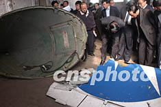 圖:有關(guān)人員認(rèn)真處理北航失事客機(jī)的殘骸 2002年05月08日 18:24 ![]() 中國(guó)北方航空公司一架客機(jī)5.7日晚21時(shí)24分在大連海域失事。圖為有關(guān)人員認(rèn)真處理打撈上來(lái)的飛機(jī)殘骸。中新社記者 錢(qián)興強(qiáng) 攝