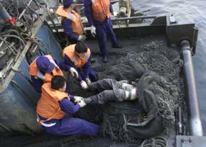 圖文:5·7空難第75具遇難者遺體被打撈出水 2002年05月11日 22:06 ![]() 中新社記者:王麗南 攝 中新網大連5月11日消息:北海艦隊某部救撈船官兵5月11日傍晚時分又打撈出一具男性遇難者遺體,至此,“五·七”空難遇難者遺體已有七十五具被打撈出水。