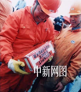 此“黑匣子”為艙音記錄器,長三十二厘米,寬十九點五公分,厚十二點二公分,重十二公斤左右。它是軍地雙方六十三名潛水員經過八晝夜的緊張作業的結果。美國專家哈利斯·卡爾說:“我曾參加過世界上九次飛機‘黑匣子’的打撈工作,這是最難的一次,別的‘黑匣子’都能看到,這次‘黑匣子’即使在你的面前,如果你不用手去摸,你也拿不走”。