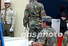 圖:臺灣澎湖28日高溫士兵加運大量冰塊降溫 2002年05月29日 11:14 ![]() 五月二十八日臺灣澎湖地區氣溫高升,設在馬公空軍基地的失事華航客機遇難乘客尸體辨認中心空氣污濁,士兵緊急加運大量冰塊降溫。中新社記者 任晨鳴 攝