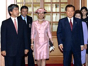 韓國總統(tǒng)金大中會見日本王室成員高圓王子(圖) 2002年05月30日 16:55 ![]() 韓國總統(tǒng)金大中會見日本王室成員高圓王子。(共同社圖) 中新網(wǎng)漢城5月30日消息:韓國總統(tǒng)金大中今天會見了日本王室成員、日本明仁天皇的表弟高圓王子伉儷。 昨天到達韓國的高圓王子和久子王妃,今天拜會了金大中。雙方進行了45分鐘的會談,比原先預(yù)定的時間稍長。 在會談中,金大中總統(tǒng)告訴高圓王子夫婦,“我相信(你們的來訪)對于韓國和日本兩國關(guān)系的發(fā)展,是一個重要的事件。” 據(jù)悉,作為主管體育的日本王室成員,高圓王子夫婦將參加明天晚上在漢城開幕的世界杯開幕式。這也是自從二戰(zhàn)以來,日本王室成員首次來韓國訪問,被認為是發(fā)展兩國關(guān)系的一個重要契機。 本屆世界杯比賽由日本和韓國聯(lián)合舉辦,比賽開幕式31日晚上在韓國舉行,經(jīng)過一個月的鏖殺,最終的大幕將在6月30日在日本的橫濱落下。