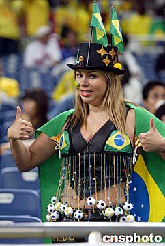 圖:巴西女球迷 2002年06月27日 16:49 ![]() 世界杯足球賽半決賽巴西隊對土耳其隊的比賽二十六日晚在日本琦玉縣世界杯體育場舉行,巴西隊以一比零取勝而進入決賽。圖為現場助威的巴西球迷。作者:毛建軍