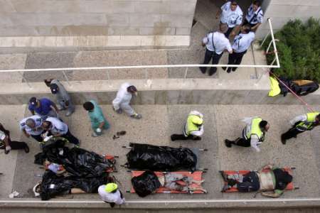 耶路撒冷大學爆炸六個外國人死亡 中國學生無恙 2002年08月01日 06:28 ![]() 中新網北京8月1日消息:以色列官員說,在耶路撒冷希伯來大學炸彈爆炸中喪生的七個人,有六個是外國國籍,包括最少一名美國及一名法國人。 事件中還有九十多人受傷。新華社說,有十多名中國留學生在這間大學就讀,他們全部安全。 本次是耶路撒冷在24小時內發生的第二宗炸彈襲擊。伊斯蘭激進組織哈馬斯已承認負責。 耶路撒冷希伯來大學餐廳發生爆炸致7死85傷 中新網北京7月31日消息:據美聯社報道,耶路撒冷東部希伯來大學的一個餐廳31日午餐時間發生爆炸,造成7人死亡,85人受傷,其中14人重傷。 巴勒斯坦激進組織伊斯蘭抵抗運動哈馬斯宣布對此次爆炸事件負責,并稱這是對以色列23日轟炸加沙居民樓進行的報復。 雖然以色列的各大學目前均已放假,但發生爆炸時仍有許多留校學生正在咖啡廳用午餐。 事發后,新華社記者與在該大學區讀書的幾名中國留學生取得了聯系。據他們介紹,由于學校放假,中國學生均離開了學校,在爆炸中沒有中國學生受傷。目前有十幾名中國留學生在該大學區讀書。 死傷的人員中大部分為18-30歲的學生,其中許多為外國學生。這是自以巴沖突爆發以來,在以色列校園內發生的首起爆炸襲擊事件。 巴勒斯坦民族權利機構事后發表聲明譴責爆炸事件。以色列總理沙龍取消了當天的所有日程安排,預計以色列內閣將召開會議。 美國總統布什強烈譴責本次襲擊。他呼吁巴勒斯坦民族權利機構致力制止恐怖主義,并強調美國不會放棄推動中東實現和平。 在昨日,巴勒斯坦激進份子,在耶路撒冷市中心,發動自殺式襲擊,造成一死七傷。