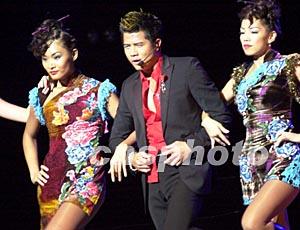 ![]() 有“亞洲舞王”之譽的香港歌星郭富城目前正在日本三個城市舉行巡回演唱會。圖為郭富城十六日晚在東京演唱會上表演勁歌勁舞。
