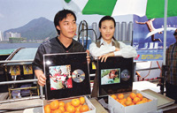 昨日英皇高層吳雨及鄭堯檉帶了兩箱柑前往探班﹐祝賀Joey及Eason的新碟同時奪得白金唱片佳績。而Eason更捧著早前在新加坡金曲獎中奪得的最受歡迎男歌手獎座照相。Eason是繼劉德華﹑張學友及張信哲后另一位得該獎的歌手。談到當晚他剛巧去了洗手間而錯過親自上臺領獎的機會﹐Eason表示﹐真的不知自己會得獎﹐也從來不喜歡預知得獎名單﹐所以當得悉獲獎一刻感到愕然。
