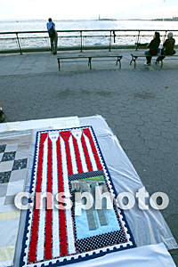 9月10日(美國紐約時(shí)間),在紐約炮臺(tái)公園,美國藝術(shù)家展示紀(jì)念“9.11”事件的藝術(shù)品。作者:王瑤