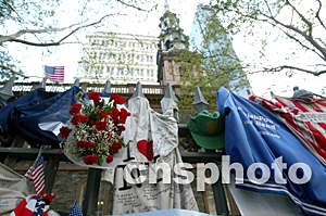 9月10日(美國紐約時(shí)間),在紐約曼哈頓街頭,人們用各種紀(jì)念品追悼”9.11“事件遇難者。作者:王瑤