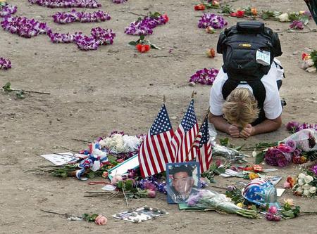 美國總統布什和夫人今天參加了所有遭受“九一一”襲擊的三個地區的紀念活動。早晨,布什和夫人出現在白宮草坪的紀念儀式上,布什并在五角大樓的紀念活動中發表講話。隨后,布什夫婦抵達賓夕法尼亞州參加紀念活動。今天傍晚,布什和夫人來到紐約世貿廢墟獻上花籃,安慰悲痛的罹難者的家庭。