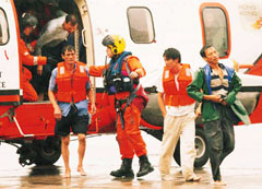 中新網香港9月12日消息:香港昨天掛出今年首個八號風球﹐但臺風“黑格比”的吹襲,仍造成1死32人受傷。港府飛行服務隊則冒著險情多次出動,搜救遇險船只,成功救起23人。