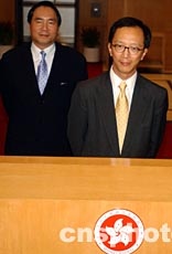 香港財政司司長梁錦松和經濟發展及勞工事務局局長葉澍堃,9月17日公布香港6月至8月的失業率為7.6%,比5至7月下降0.2%。中新社圖 任晨鳴 攝
