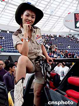 國慶黃金周,廣州體育館舉行二00二中國南方汽車展,國內外五十多家著名廠商上百款靚車同時登臺亮相。作者:劉衛勇