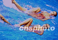 澳門花樣游泳雙人組合在釜山亞運(yùn)會(huì)二日決賽上演水中“梁祝”,富于美感。作者:賈國榮