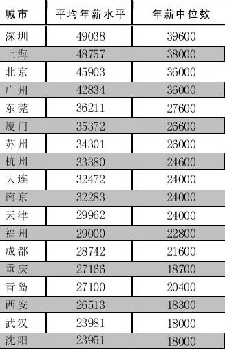 據中國青年報報道,上海、北京、廣州的薪資水平分別以48757元、45903元、42834元位列其后,相對上期下降了1000元。