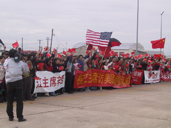 當江澤民專機降落在洛斯卡沃斯國際機場時,中國香港特區行政長官董建華夫婦,先期抵達的中國外交部長唐家璇,外經貿部長石廣生、中國駐墨西哥大使李金章和墨西哥一名副外長等在舷梯旁迎接。