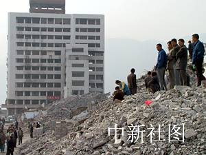 今天的集中爆破吸引了眾多的奉節老百姓觀看。他們都懷著一種對舊城揮之不去的感情,有的早早地從新縣城趕來,在爆破之前最后一次目睹舊城的建筑物;有的則早早地搶站在高樓的最佳位置觀看爆破過程,以便留下自己祖祖輩輩居所的最后印象。